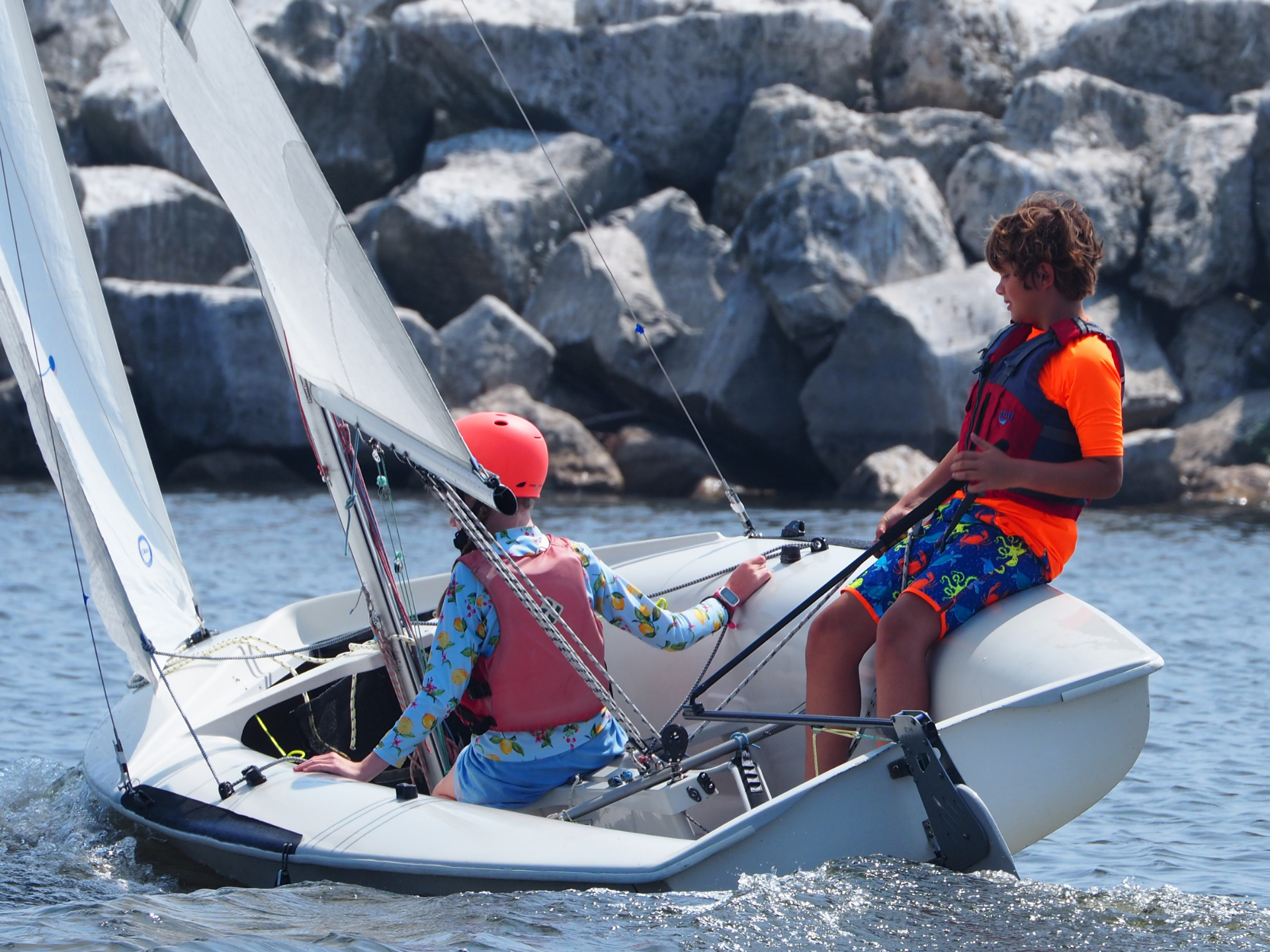Our lakefront boasts an extensive inventory of some of the top one-design racing and learn-to-sail boats in the world. We take pride in our fleet and strive to maintain them to world-class standards so that our students get the best experience we can offer!